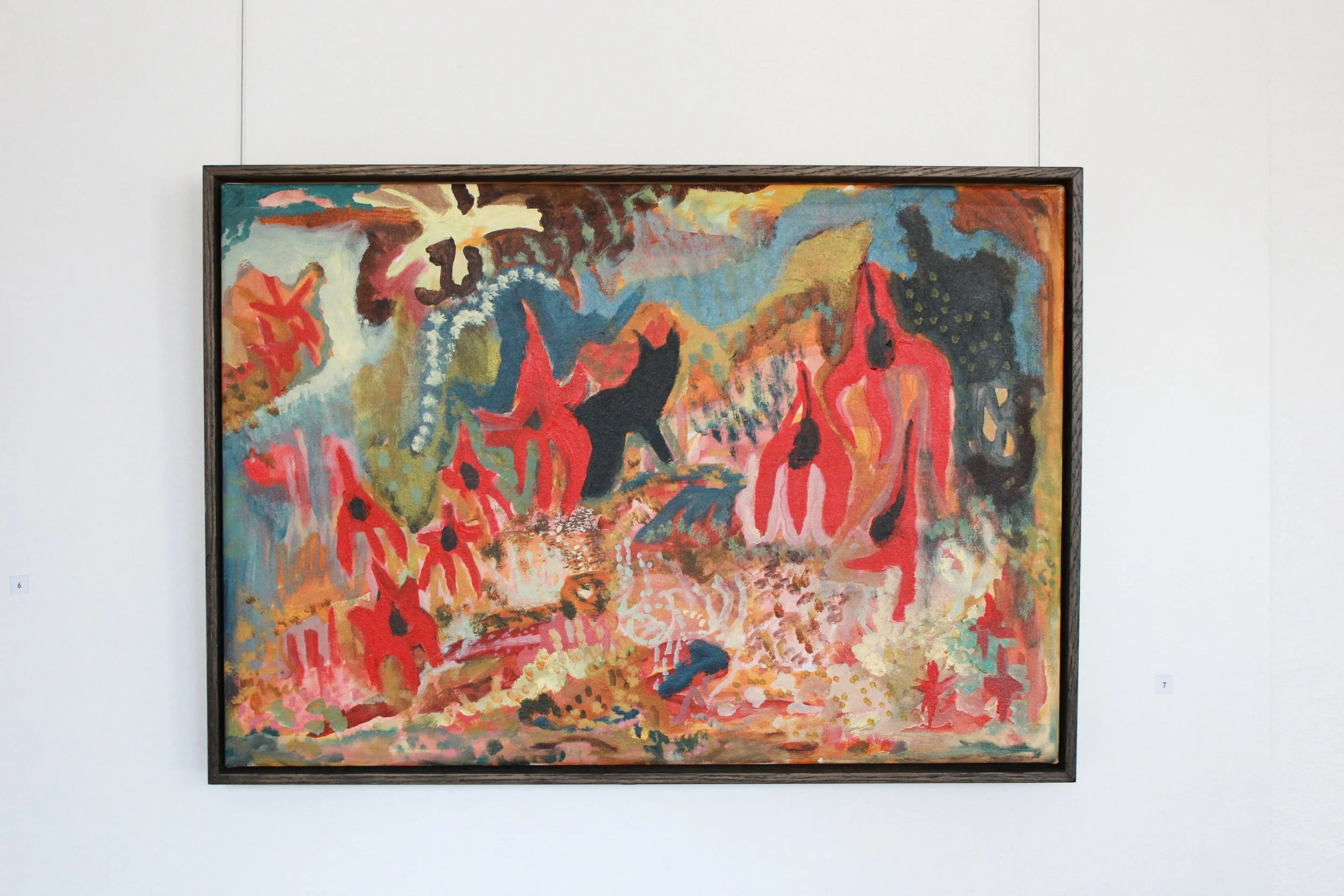 Her practice is rooted in emotional responses to nature, drawing from memory, sensation and the seen and unseen qualities of landscape. Through colour, symbols and gestural compositions, she maps internal response to land.